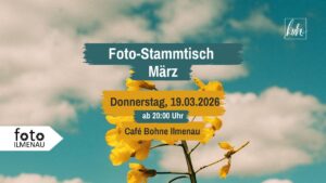 Fotostammtisch im März Datum: Mittwoch, 19.03.2026 ab 20:00 Uhr Ort: Café Bohne Ilmenau Worum geht’s?Du liebst Fotografie und möchtest dich mit Gleichgesinnten austauschen? Ob du…