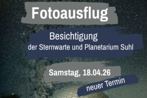 ‼️neuer Termin – da Besuch im Januar ausgefallen ist‼️Besichtigung der Sternwarte Suhl im April 2026 Freut euch auf eine spannende Planetariumsführung und – bei klarem…
